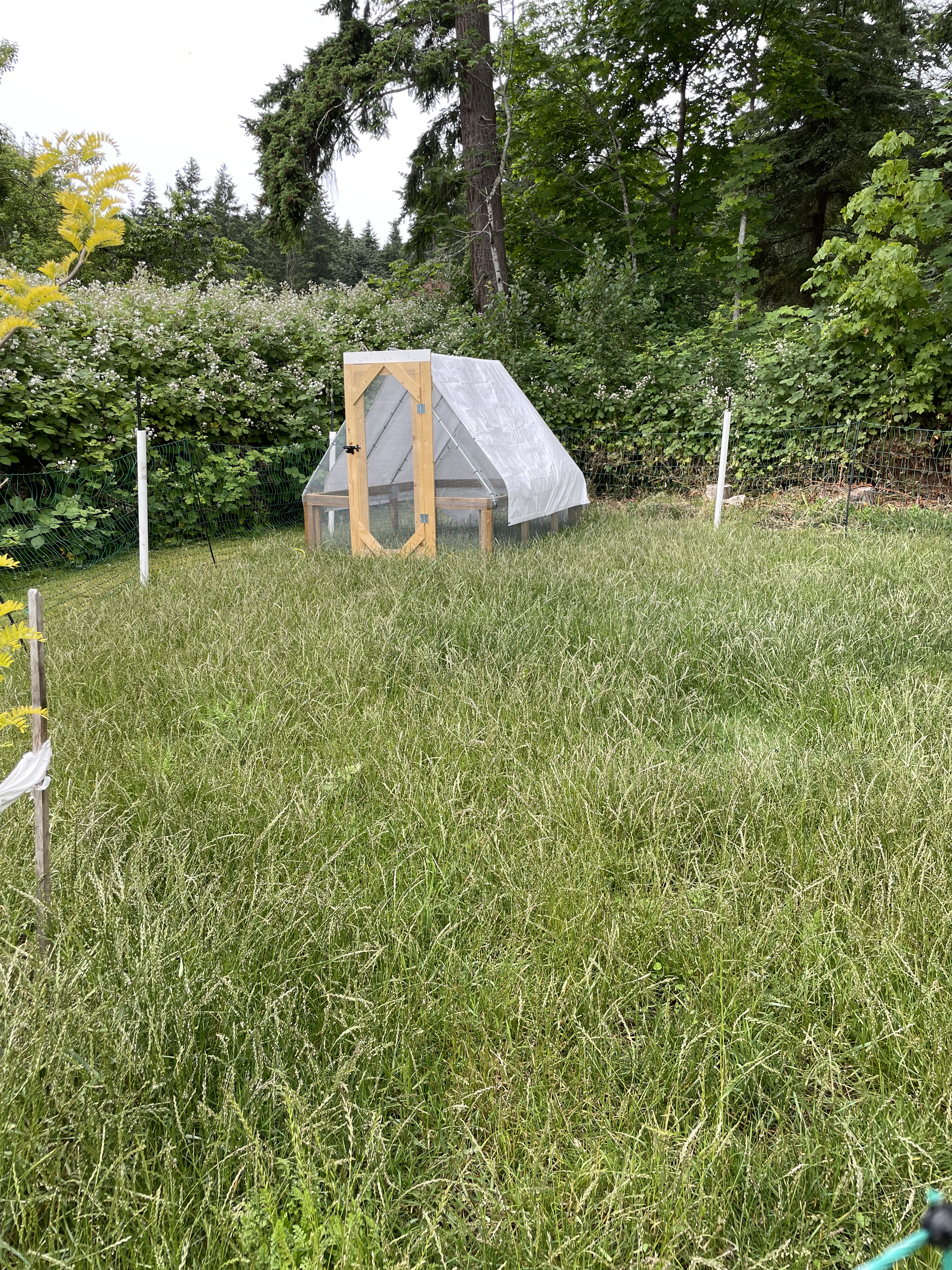 I raise the chicks in the barn then move them out to the chicken tractor. Picture below is the chicken tractor ready for the birds.
