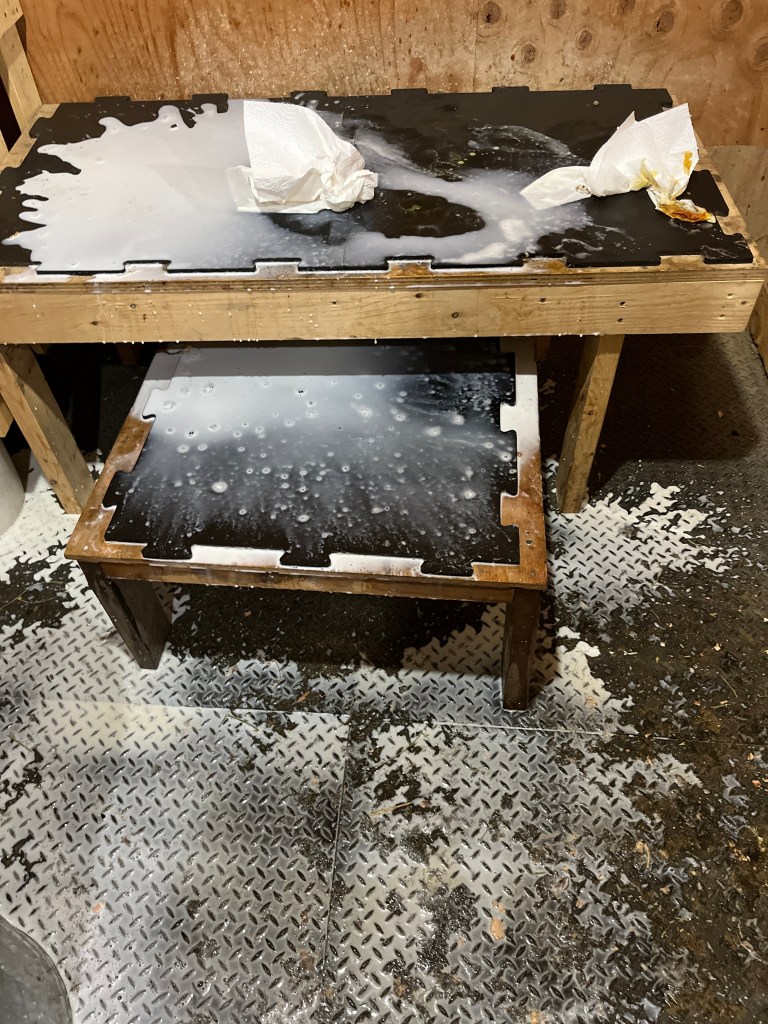 Spilled milk. Yup. It happens and it’s messy. Ooph! By the way, don’t panic. The brownish colour on the paper towel in the spilled milk photo is teat dip!