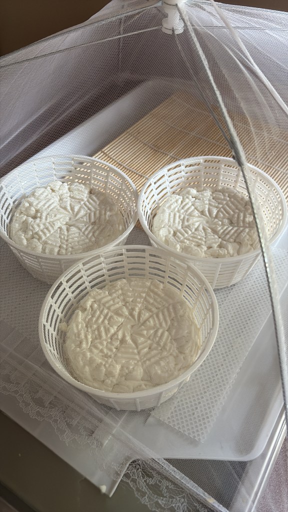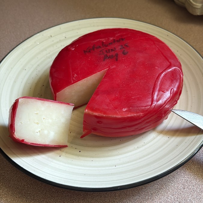The animals as usual kept us on our toes. The two goats, Willow and Wren, both needed help kidding, but once on the ground, the kids didn’t look back. Little mischief-makers! By the time August rolled around, anything garden-wise went out the window because life was all about milk, and making cheese. We found a used wine fridge to use as a cheese cave and perfected a hard cheese favourite; a Greek cheese called Kefalotyri. We also made endless batches of rich, delicious yoghurt.