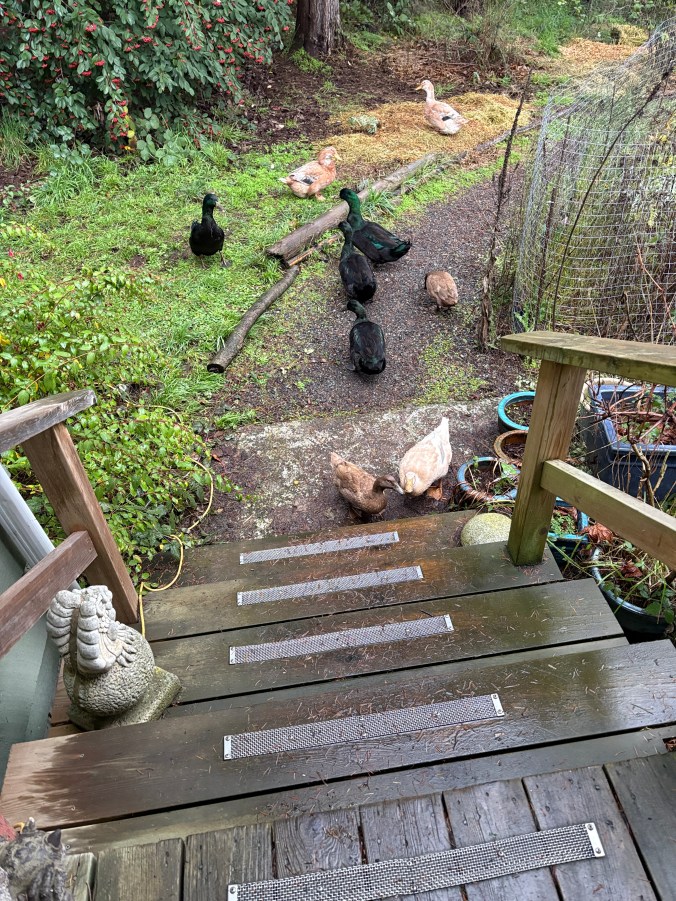 The ducks, as usual, were the comedians and kept us grounded when we felt life was getting too chaotic. We firmly believe it’s impossible to be cranky around a duck! Dawg kept a watchful eye on them – and they on him!