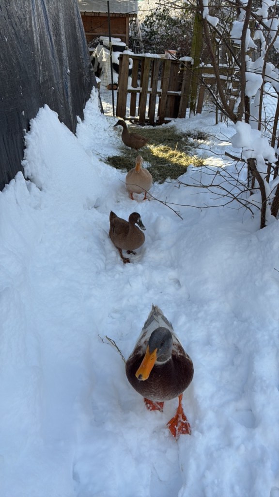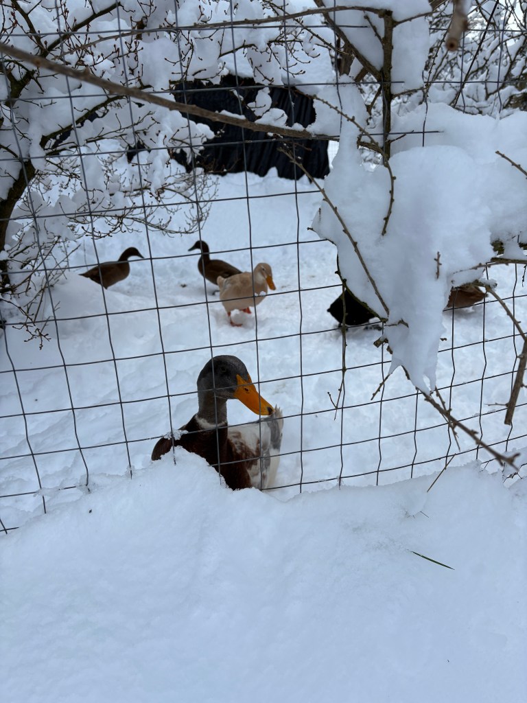 Once the snow melted, the ducks needed three water changes before they felt “just ducky!”