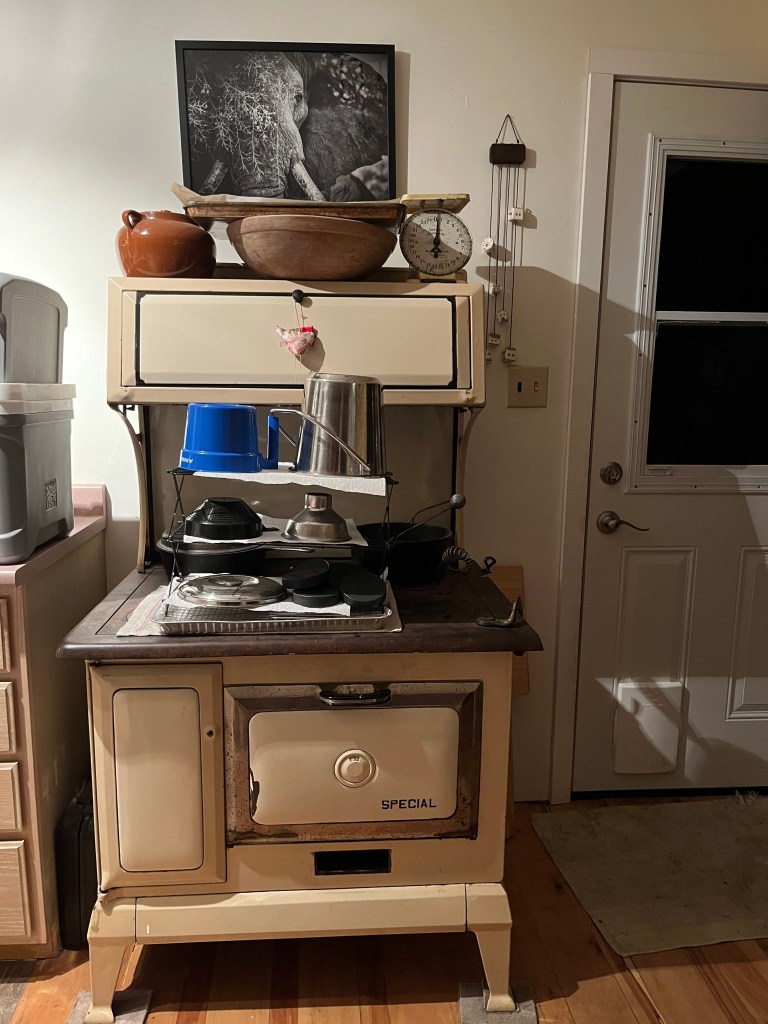 I bought this lovely old cook-stove from an acquaintance who needed to downsize. I admit my heart fluttered and my brain, well, I vanished down the rabbit hole of childhood memories.