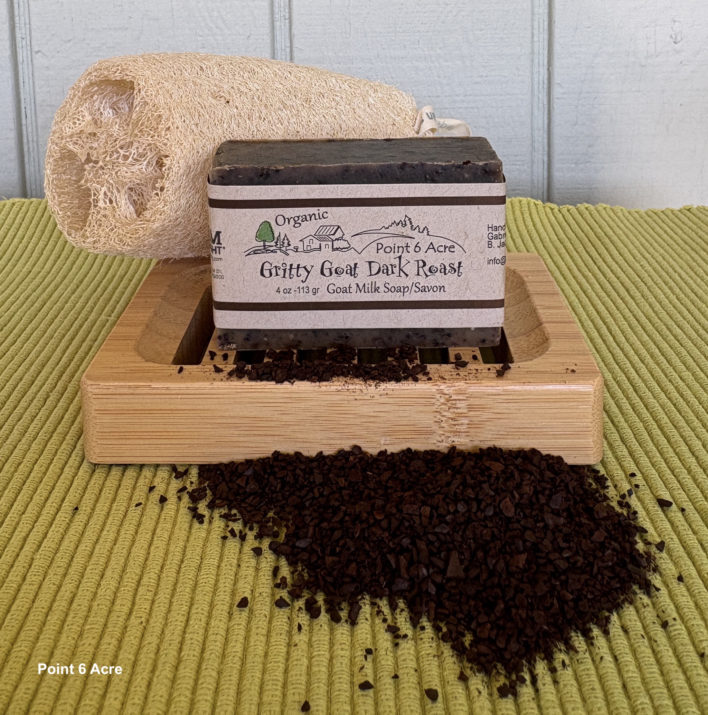This soap contains Organic Olea europaea (olive) oil, Raw goat milk, Organic sustainable Elaeis guineensis (palm) oil, Organic Cocos nucifera (Coconut) oil, Organic Prunus amygdalus dulsis (sweet almond oil), and Organic Coffea Arabia (organic ground coffee) Seed.